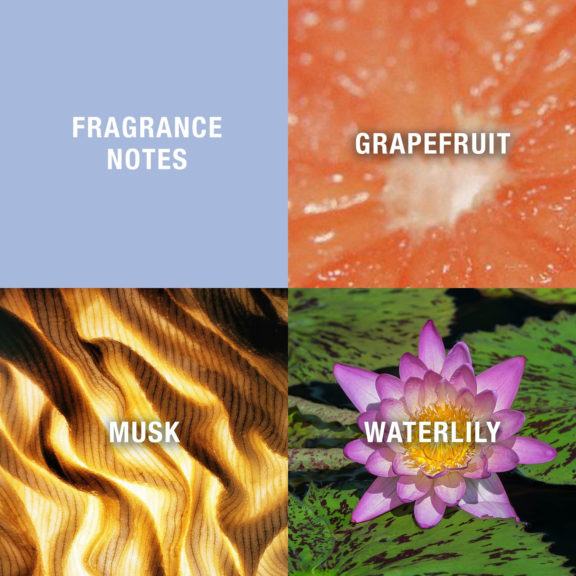 • Top 3 fragrance notes include grapefruit, waterlily, and musk